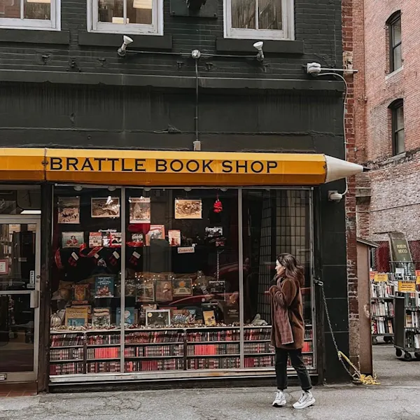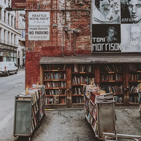 A giant No.2 pencil marks the entrance to one of the oldest antiquarian bookshops in the US.