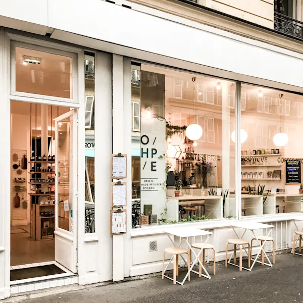 A minimalist coffee shop offering homemade pastries, groceries and goods.