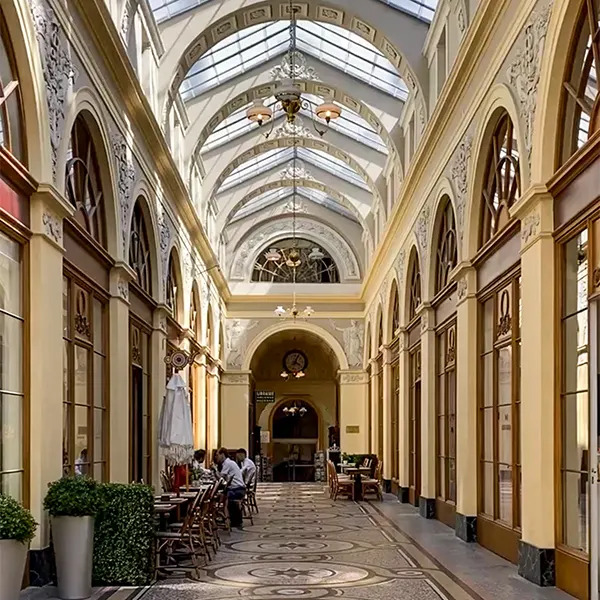 Galerie Vivienne is a stunning example of one of Paris' iconic covered passages. Built in 1823 in the neo-classical Pompeian style, Galerie Vivienne became listed historical monument since 1974. The floor is covered with elaborate mosaics and light filters in through the stunning glass roof. Galerie Vivienne is conveniently located in the center of Paris between the Bourse and Palais Royale, and has three entrances via Rue de la Banque, Rue Vivienne and Rue des Petits Champs.