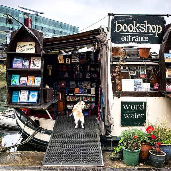 A 100 year old Dutch barge is home a unique bookshop, also known as The London Bookbarge.