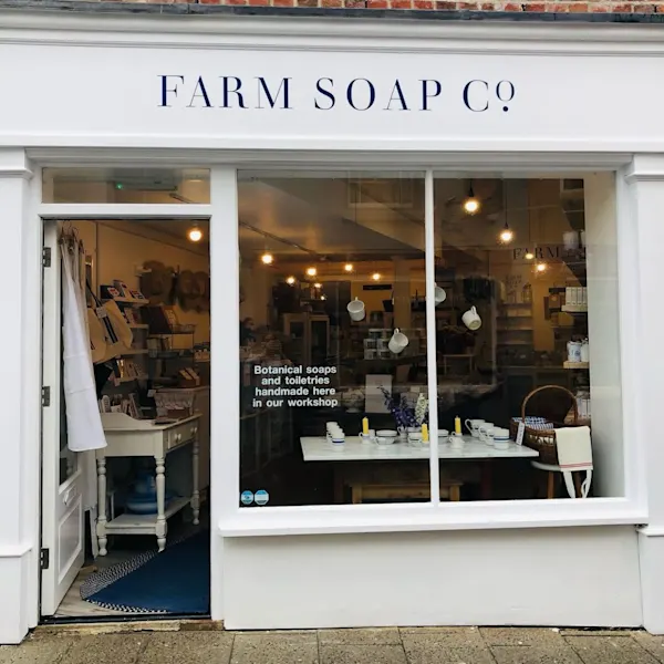 A shop showcasing locally-made handmade soaps and botanical skincare products.