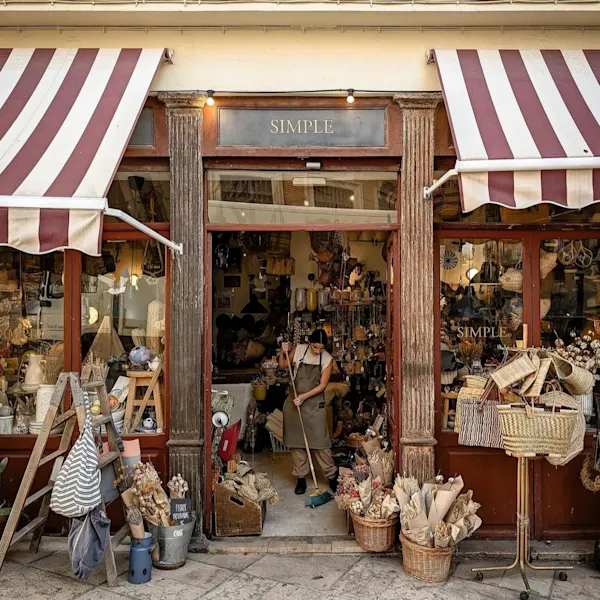 Charming home decor boutiques with unique handmade goods, furniture, and home textiles.