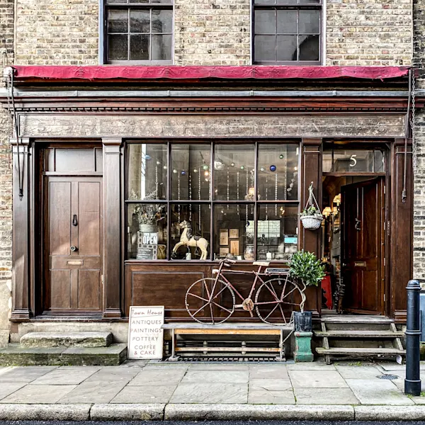 A restored 1721 building in stunning Spitalfields home to an art gallery and antique shop.