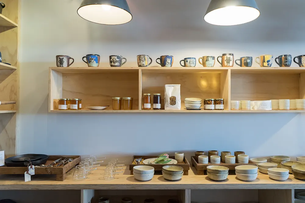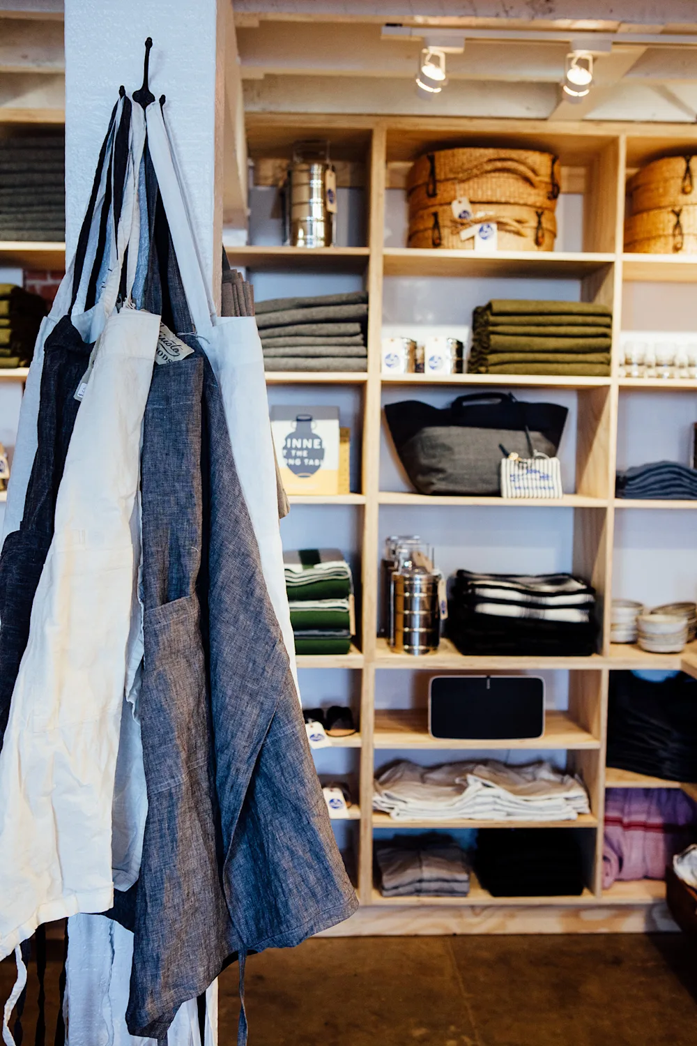 in 2014 Shelley Kleyn Armistead, a member of the team behind the beloved Los Angeles restaurants, bakeries, and stores - Gjelina and Gjusta - brought product design in-house to create a more cohesive and distinct aesthetic for each of the restaurants. Gjusta Goods sells the handmade ceramics and glassware, locally made linen aprons and napkins developed for the restaurants, and the Gjelina cookbook alongside a mix of pantry items and found vintage pieces.
