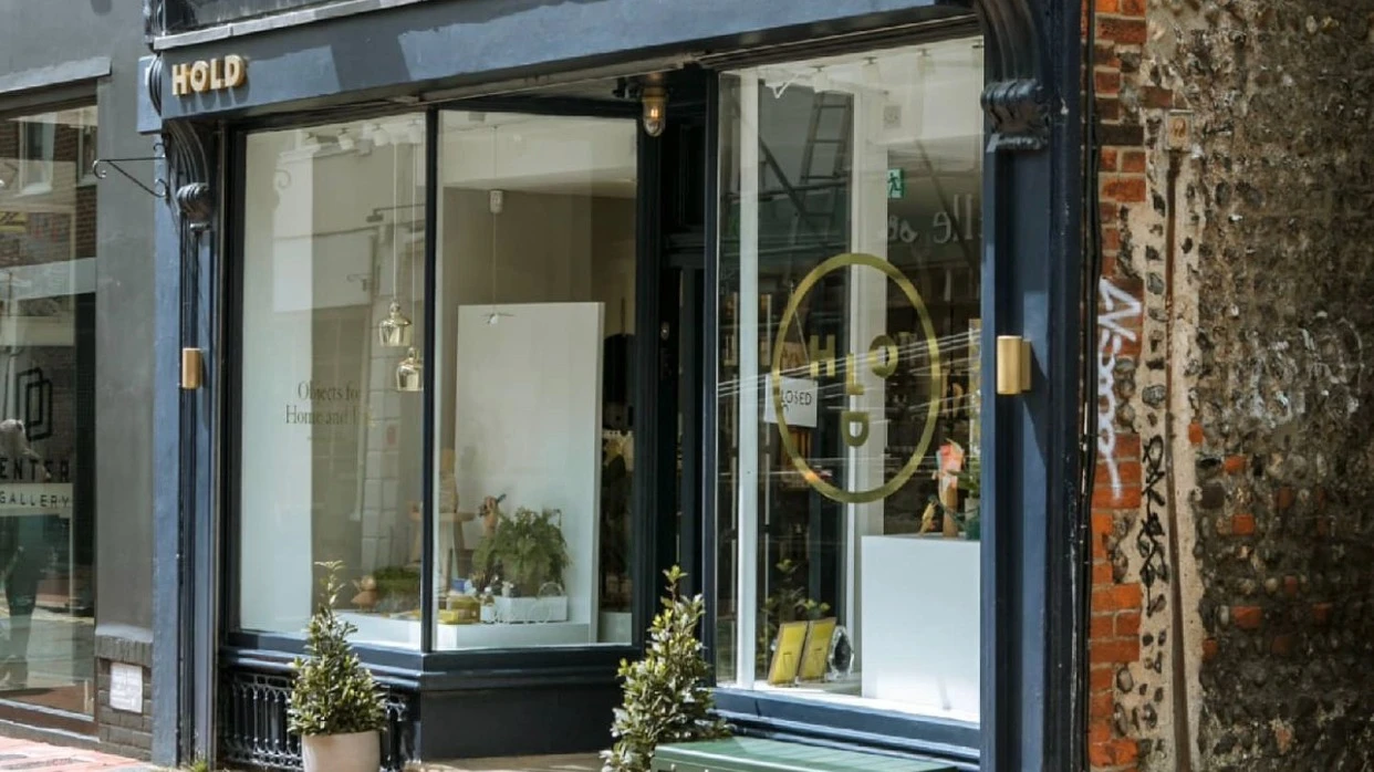The distinctive shopfront of HOLD in Brighton's vibrant North Laine district, with its graphic, gold signage, is a testament to the delights and treasures that await customers inside. HOLD was established in 2019 by Kelly Hyatt, creative director of Lagom Design, an award-winning boutique greeting card and gift wrap company also based in Brighton. As well as showcasing a wonderful selection of greeting cards the shops two floors are filled with an interesting, assortment of beautifully designed objects for the home and life.