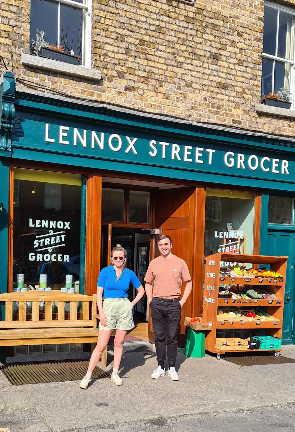 Originally a pop-up, Lennox Street Grocer opened in November 2020. Two years later, the shop conceived by siblings Claire and Chris Arnold (with a combined 20+ years working in various aspects of the food and beverage industries in Europe and North America) is thriving. The shop marries a delicious selection of products from local and international suppliers with a beautifully presented shop. The classic, smartly painted shopfront with its colourful display of produce and the creative signage hand painted by artist Darragh Mulryan.