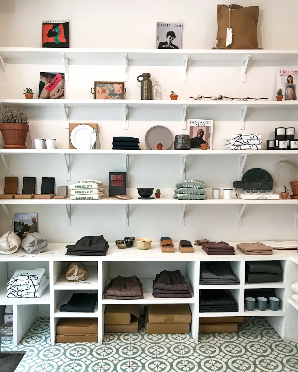 A sustainable men's and women's clothing brand established in Paris in 2014. Noyoco's styles are unisex and meant to be worn all. Noyoco opened a store in the heart of le Marais in 2017, outfitting it with hanging copper racks, cement tiles handmade in Spain, oak platform and displays. The clothing is complemented with a selection of accessories, objets, and beauty items by other brands.
