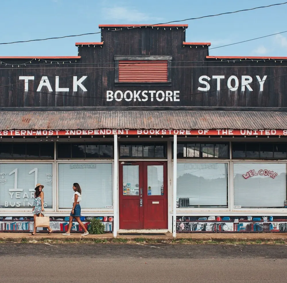 The westernmost bookstore in the U.S, Talk Story Bookstore, opened in 2004 by Ed Justus transforming his at-home eBay business into a bookstore. The award-winning business stocks over 25,000 unique titles including new, used and out of print books, and all things Hawaiiana.