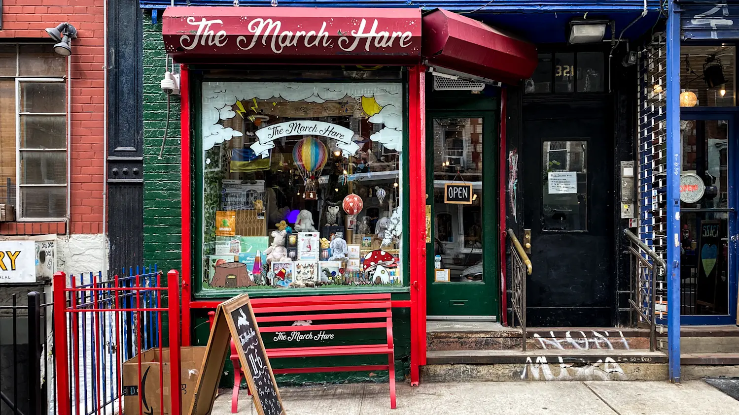 The March Hare is a charming, whimsical toy shop filled with all manner of imaginative toys and gifts for kids of all ages. The toy shop with its colorful shopfront and rainbow-striped shutter (when closed) is built on an illustrious past, a toy-store business that was established in the East Village in 1983. The current owners, Ilana and Mike Wiles, took over the shop in 2022 and have continued the traditions of this beloved neighborhood store. A visit to the store reveals many delightful touches - there is a fortune-telling Zoltar or write a note to the shop's very own March Hare Fairy .